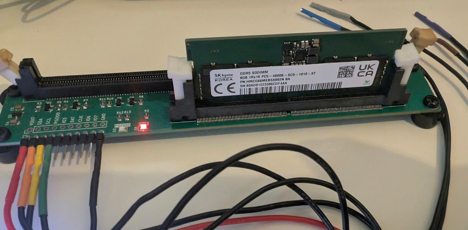 Finally got the reworked DDR5 board. Looks like The UDIMM got a bit cooked on the send pass through the reflow oven (maybe just the actual color?).