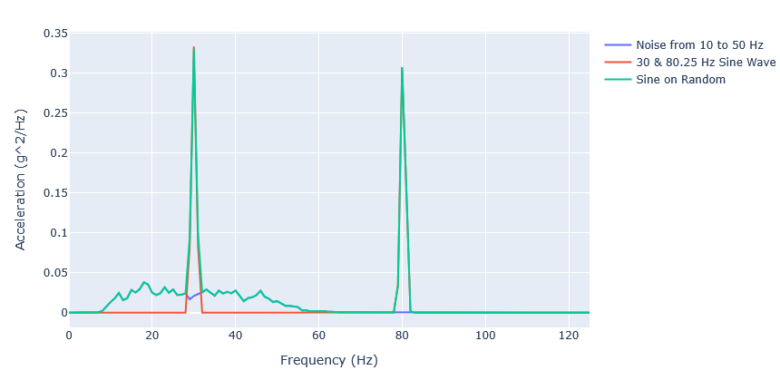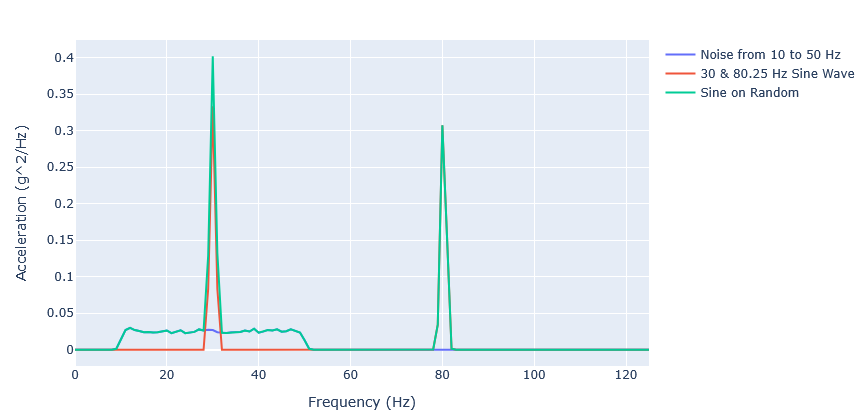 noise['Sine on Random'] = noise['30 & 80.25 Hz Sine Wave'] + noise['Noise from 10 to 50 Hz']