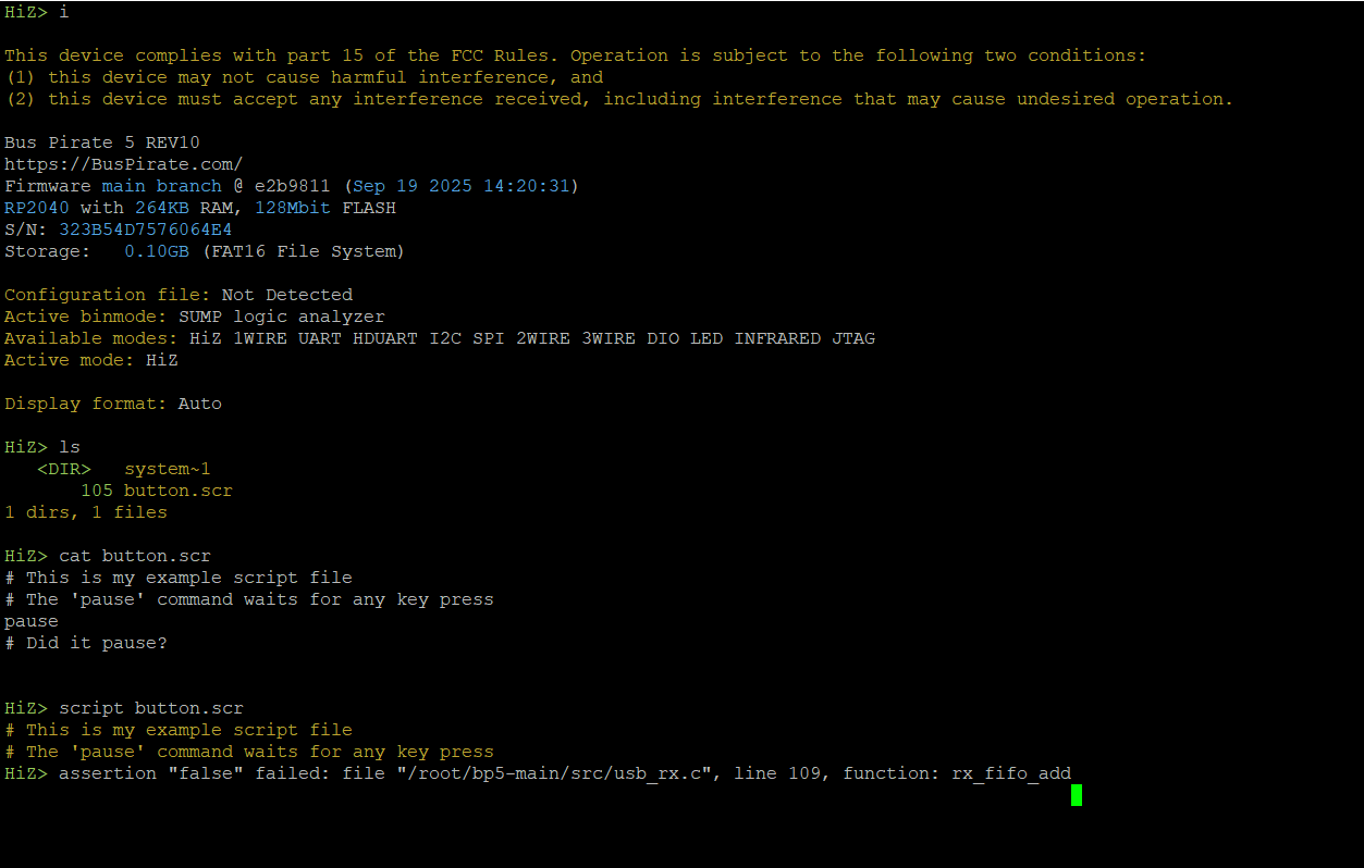 Error: assertion “false” failed: file “/root/bp5-main/src/usb_rx.c”, line 109, function: rx_fifo_add