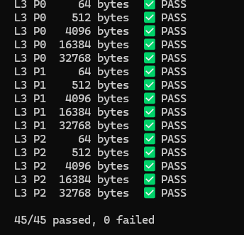 However, that pointed to an issue in the USB stack. So a new txtest (hidden) command saturates the USB stack with up to 32K at a time, using different breaking patters and a CRC. A python script does a full sweep test of 45 different combos to make sure nothing is lost. They all passed.