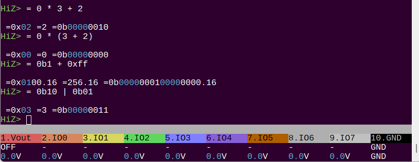 v <IOx> - single voltage measurement on pin <IOx>. Omit the pin number to measure voltage on all pins once.