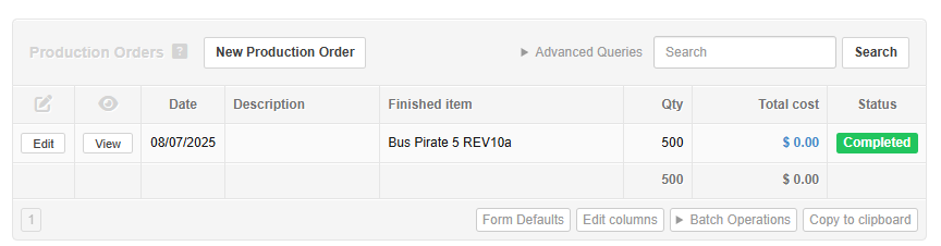 Production orders are a bit weak, but it does make clear exactly what parts we have and what is missing.