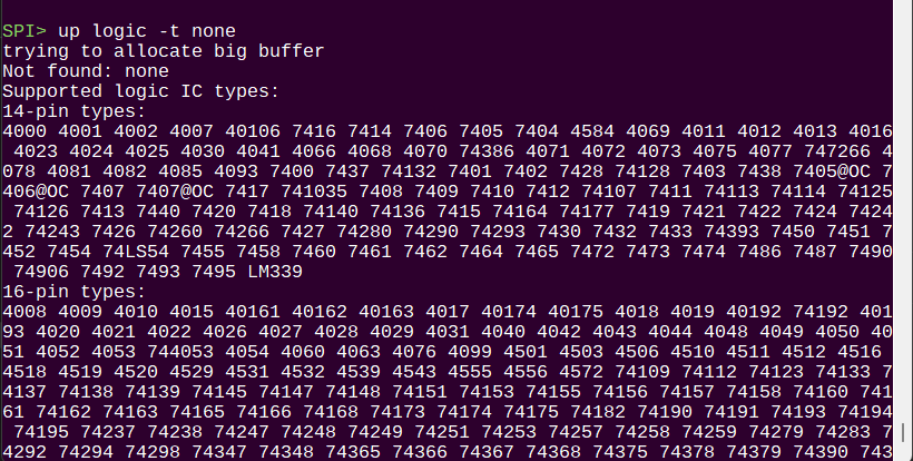 Since we have the names of the logic ICs in a nice struct we can print the available devices when the type is unknown. Not pretty yet, that needs a bot more work. Maybe tabs?