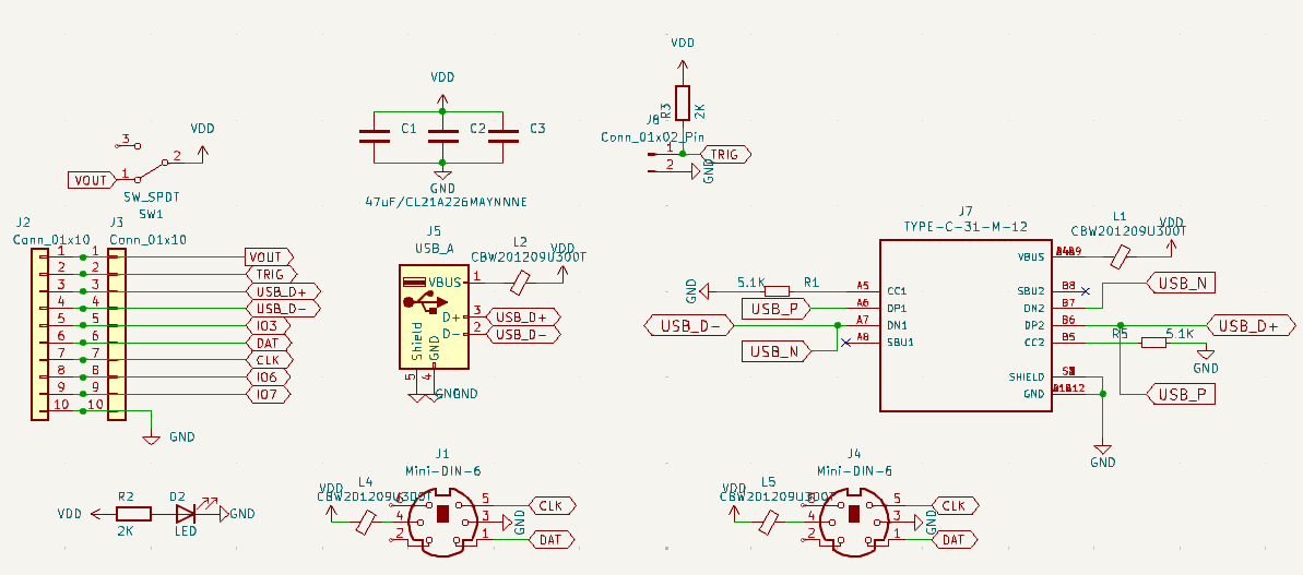 I prefer through-hole (TH) connectors for TRIGGER PIN, USB and PS2 because they withstand the test of time better. (Many times with SMT, I’ve ended up with the connectors in my hand when connecting extension cables, etc.)